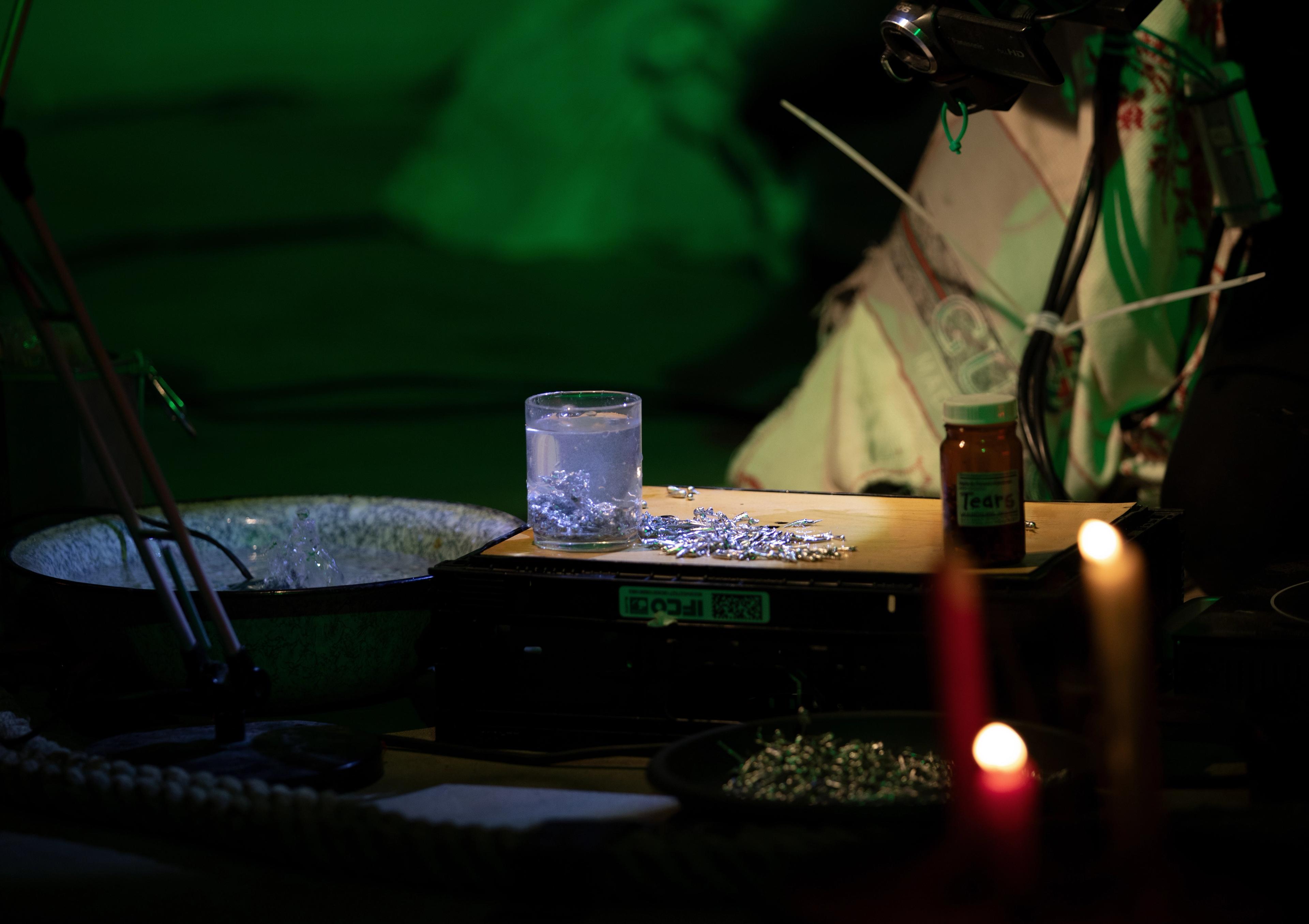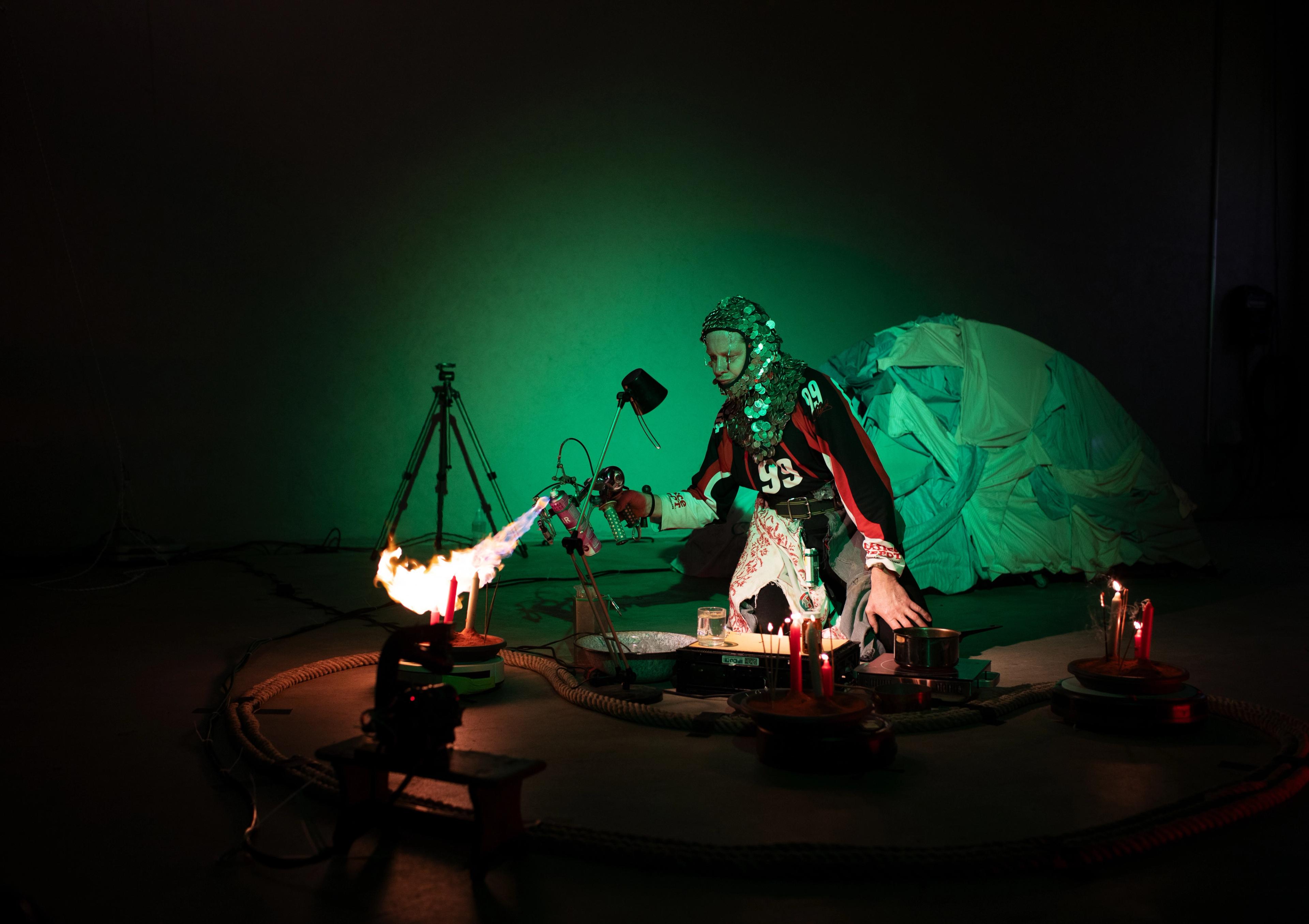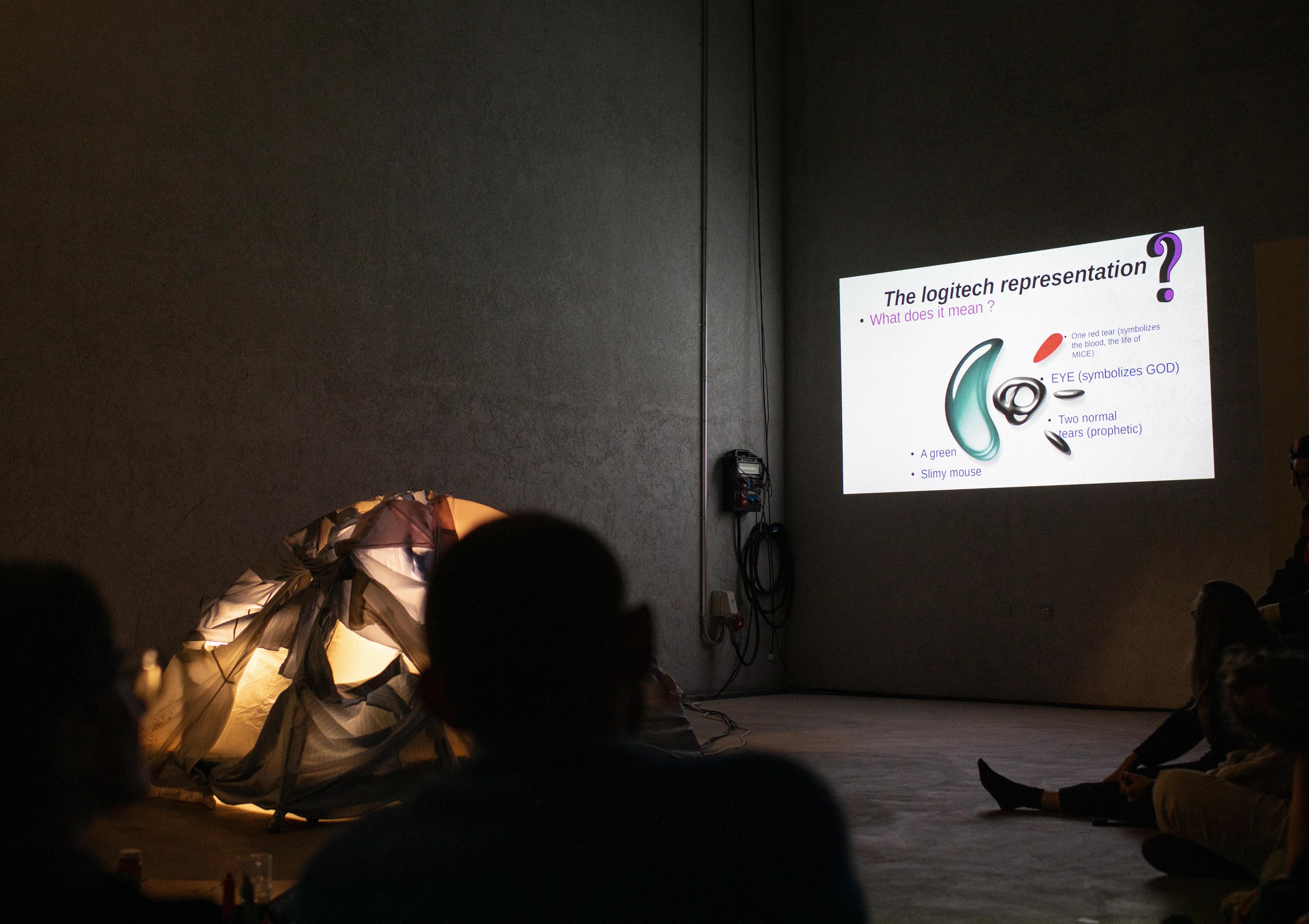 LOG-III is an ongoing performative project that unfolds as a speculative fiction where utopia and dystopia contaminate each other. Set in the ruins of the Logitech headquarters, now seen as a sacred site, the performance follows a small community that reinterprets the remnants of human civilization through ritual, repair, and imagination. Guided by an oracle, they reinvent social roles embodied by costumes—each transforming waste and digital relics into forms of currency, music, and myth. Mixing Vaudois informatics with pagan ceremony, LOG-III explores an archaeology of technology and the future of coexistence. Its origins also trace back to the Dinbergs’ own family history: Dinbergs’ great-uncle co-invented the first optical computer mouse, the Logitech P-4.