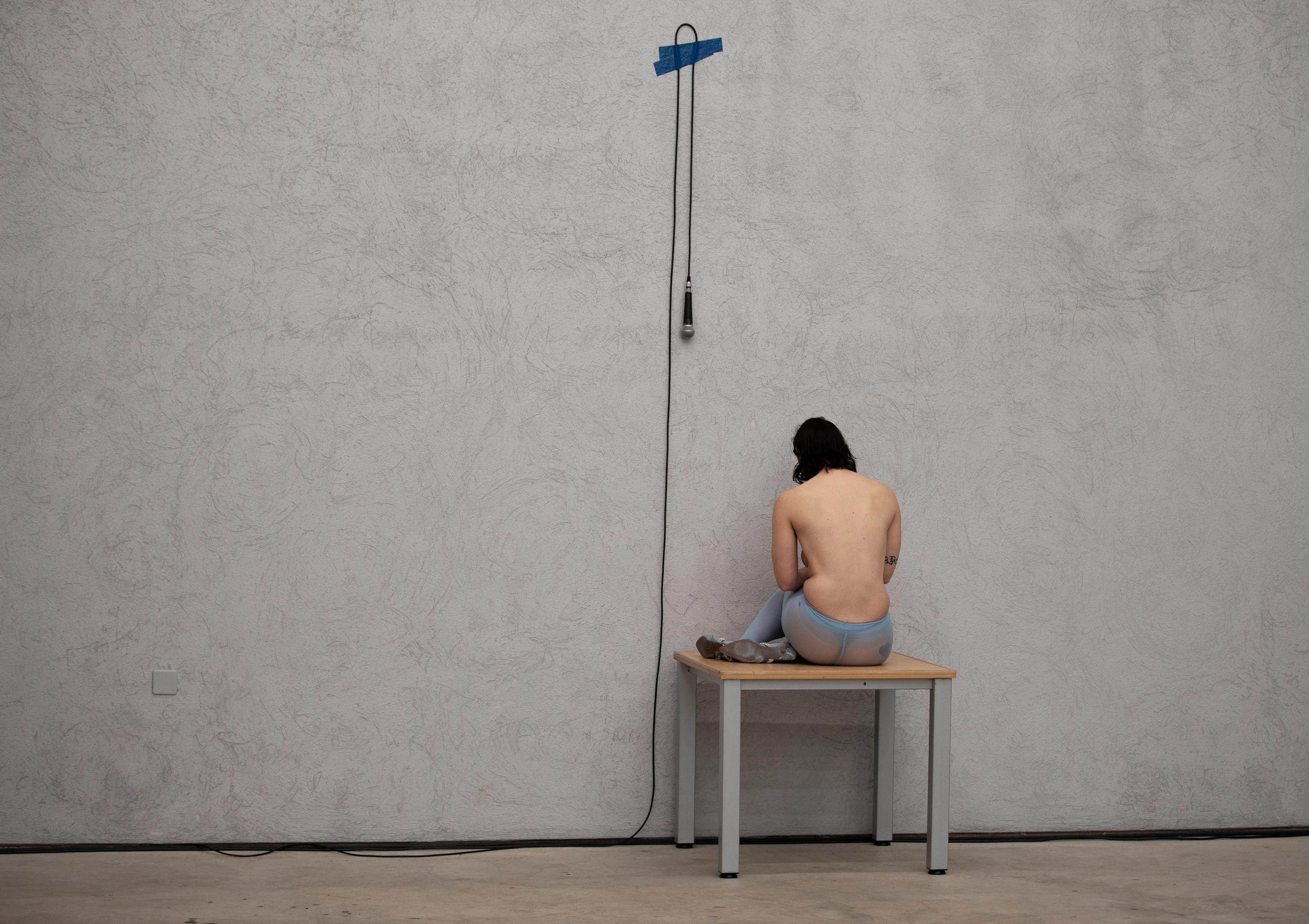 the wizard is not real is a poetic and grotesque journey through sadness and absurdity, an attempt to move through sorrow without freezing it. Soberly equipped with a microphone and a table, lisa laurent cries. What emerges is not a catharsis, but a raw landscape where emotion becomes sound, gesture, and rhythm. The performance unfolds like a failed symphony of sighs and silences, where fragility becomes a space for both humour and beauty. Through burlesque gestures and futile attempts at normality, lisa laurent exposes the tension between collapse and control, despair and lucidity.